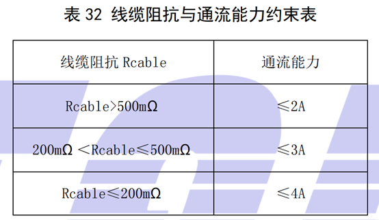 當(dāng)電流>6.5A時,需要增加UFCS線纜電子標(biāo)簽;當(dāng)4A<通路電流≤6.5A時,建議增加UFCS線纜電子標(biāo)簽,也可支持其他線纜識別方案;當(dāng)線纜通流≤4A時,不需要識別線纜,采用根據(jù)線纜阻抗來匹配線纜通流能力。